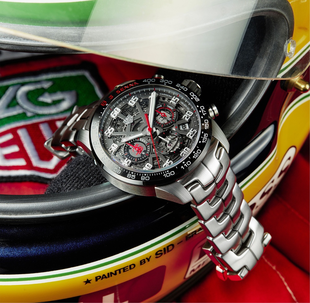 Odkaz Ayrtona Senny tak v produkci TAG Heuer stále přetrvává a to je dobře. Fanoušci tohoto pilota, kterému jeho hbitost v kokpitu F1 vynesla přezdívku Magic, budou mít na výběr mezi dvěma kousky kolekce Carrera. V obou případech se jedná o skeletované chronografy s manufakturními strojky, přičemž první spoléhá na Heuer 02, druhé v černém PVD provedení pohání dosud nejvyšší in-house strojek z produkce značky a sice Heuer 02T (T jako tourbillon).