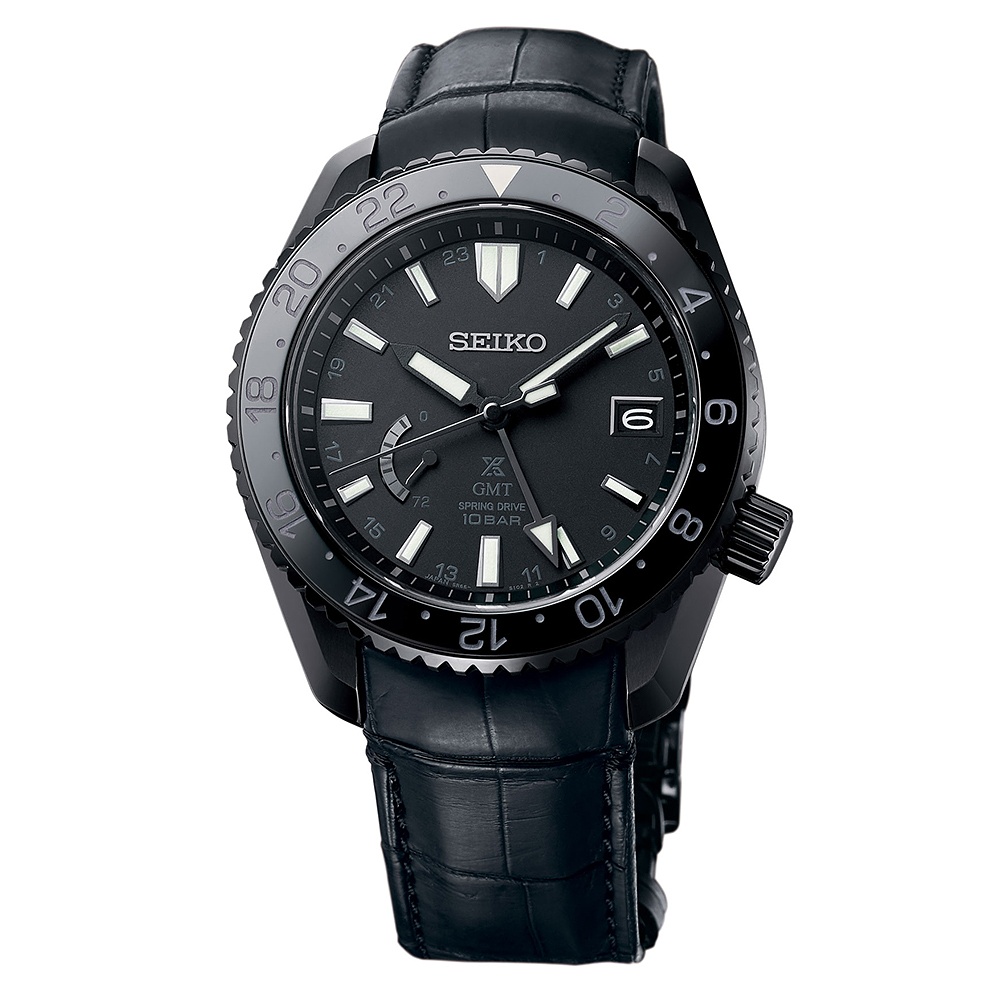 Proporce pouzdra jsou na chlup stejné jako u předchozí dvojice (44,8 mm; 14,7 mm). A totožné je také srdce hodinek, tedy kalibr Spring Drive 5R66 s přidanou GMT ručkou ve tvaru šipky. Není tedy tolik výrazná.