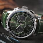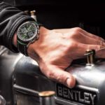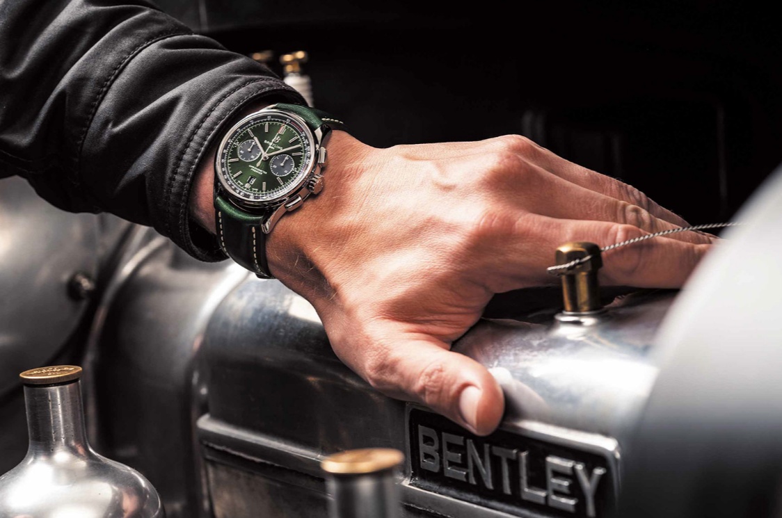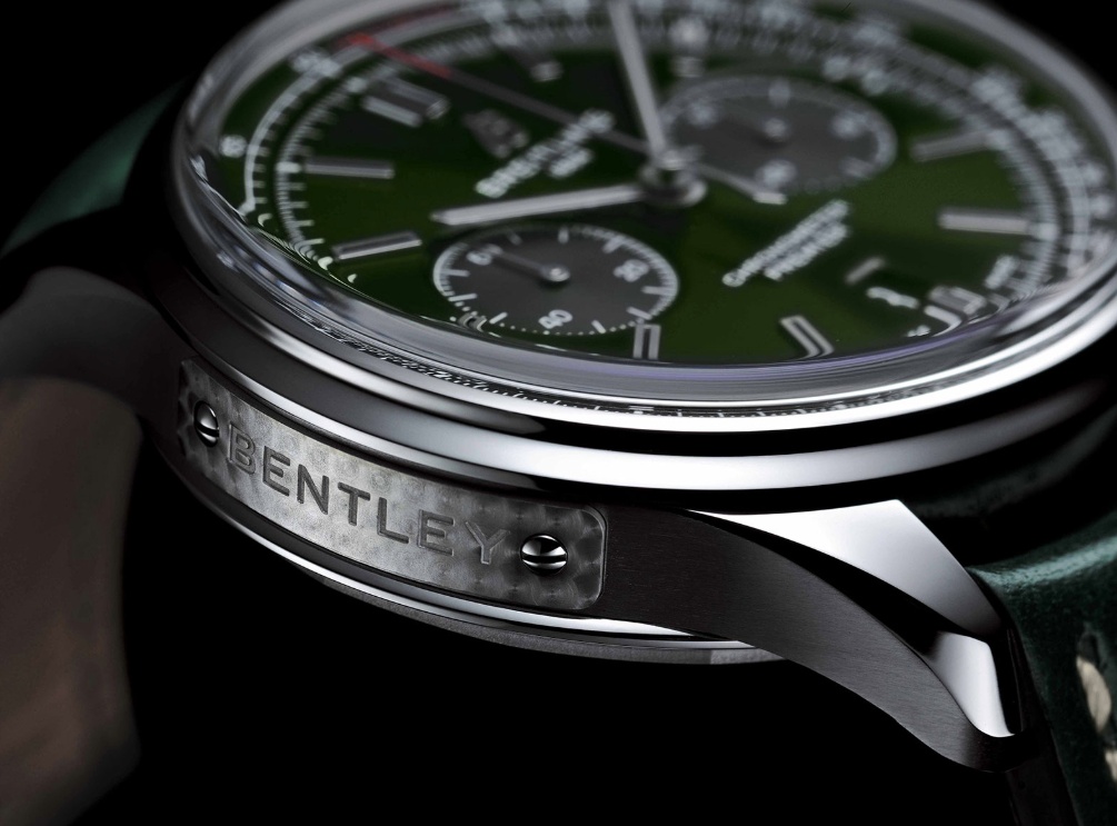 Specialitkou je pak tento chronograf v edici automobilky Bentley, jejíž logo vyvedené na ocelové destičce je přichyceno na levém boku pouzdra. Dalším rozdílem je zelený číselník a stejně zbarvený kožený řemínek. Příznivci Bentley za novou časomíru vydají bezmála 203 tisíc korun.