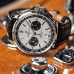 Po obvodu černého nebo modrého číselníku je tachymetrická stupnice. Ručky jsou dlouhé a štíhlé, ovšem na rozdíl od skeletovaných indexů jsou vyplněny luminiscenční barvou. Základní varianta s hnědým číselníkem stojí 148 200 korun, zájemci o verzi s kovovým náramkem nechť si připraví 153 400 Kč.