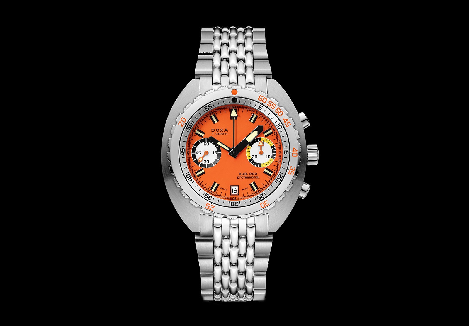 Na letošním Baselworldu Doxa šokovala odhalením legendárního chronografu Sub 200 T.Graph v provedení ze žlutého zlata. Nemalý masiv drahého kovu vyšrouboval jejich cenu na bezmála 70 tisíc dolarů. Teď přichází jejich ocelová varianta s mnohem příjemnější cenovkou.