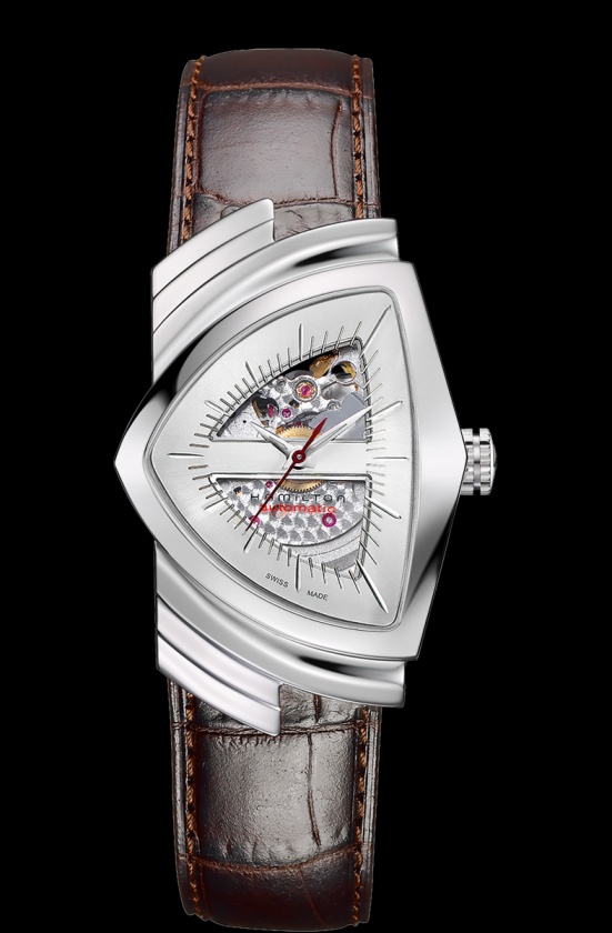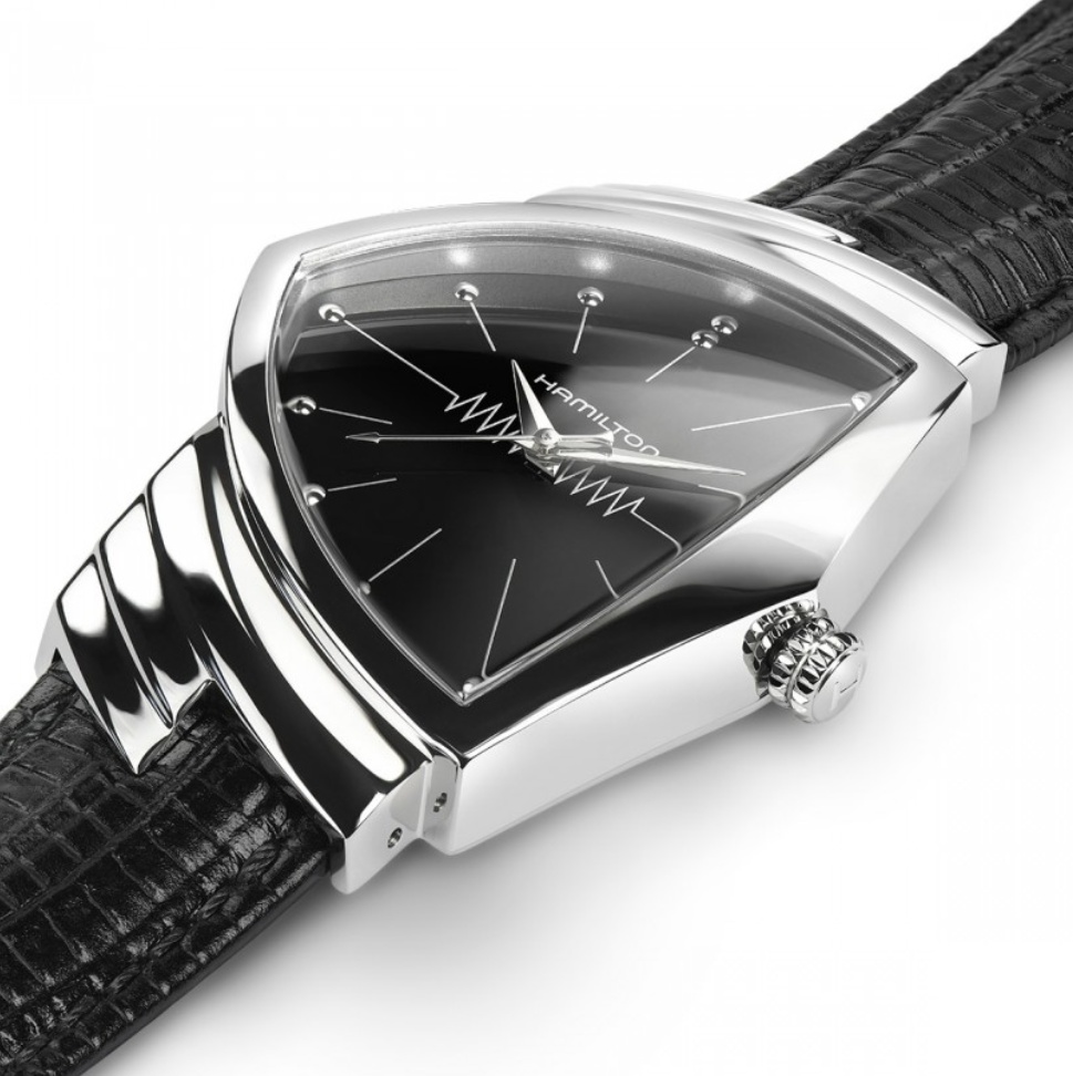 Historie řady Ventura sahá až do roku 1957, kdy se staly světově prvními elektrickými hodinkami, tedy časomírou s bateriovým strojkem. Elektrický pohon symbolizovalo i křivka střídavého proudu půlící číselník. Hodinky na první pohled zaujmou trojúhelníkovým tvarem pouzdra, i provedením ocelového náramku. Jsou šperkem, který si zapamatujete.