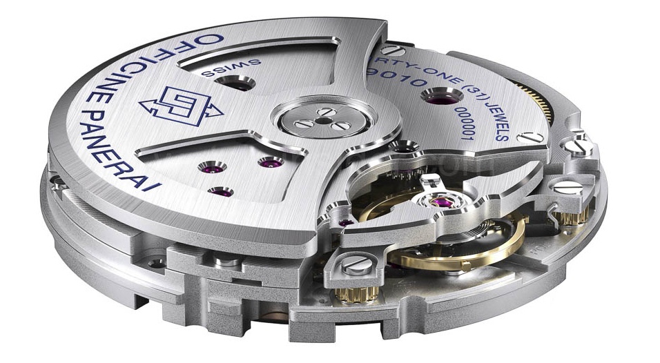 Jedná se o dobře známý manufakturní kalibr, který mezigeneračně, tedy vůči P.9000, prošel zeštíhlovací kůrou a jeho tloušťka klesla na rovných 6 milimetrů. Průměr 31,02 mm zůstal neměnný, stejně jako 72h rezerva chodu.