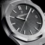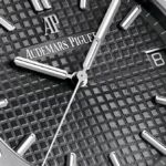 Velikost novinky s označením 15500 zůstává stejné jako u dosavadního modelu s referencí 15400. Ocelové pouzdro klasického designu má tedy opět 41 milimetrů v průměru. Viditelné změny se ale odehrály na číselníku, jehož plochu zdobí známý vzor označovaný jako Grande Tapisserie.
