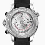 Použití nového strojku znamená jinou konfiguraci sčítačů. Hodiny a minuty se totiž při spuštěném chronografu načítají na subciferníku u třetí hodiny. A stejně jako u posledních dvou generací Planet Ocean (a Speedmaster) lze spojený sčítač použít jako plnohodnotný ukazatel času v libovolné časové zóně. Chcete mít neustálý přehled o času v New Yorku? Pak stopky pusťte v šest hodin ráno místního času a budete jej mít. Malá vteřinka obíhá naproti u devítky, takže v tomto směru se nic nemění.