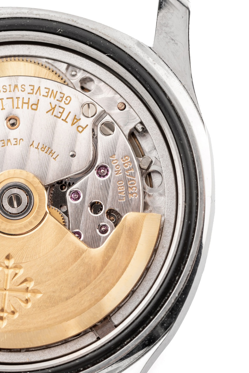 Další zajímavostí je ukazatele rezervy chodu pod dvanáctou hodinou, čímž připomínají model Nautilus 3710 z roku 1998. Ovšem komerčně vyráběné kusy tuto komplikaci neměly. Plné ocelové dýnko ukrývá manufakturní kalibr 330/196 s nápisem “LABO No.04”, který signalizuje, že se skutečně jednalo o experimentální kus, který nebyl předurčen k prodeji. Aukci předcházely dohady. Jedinečný kousek nebo fake?
