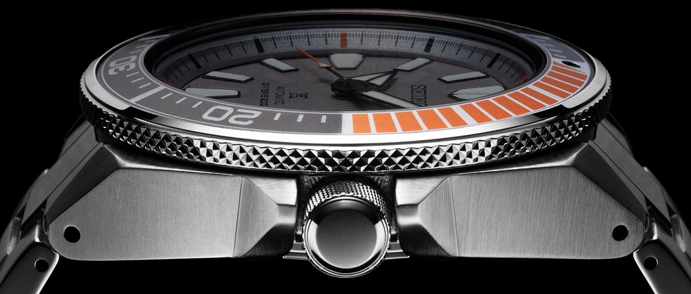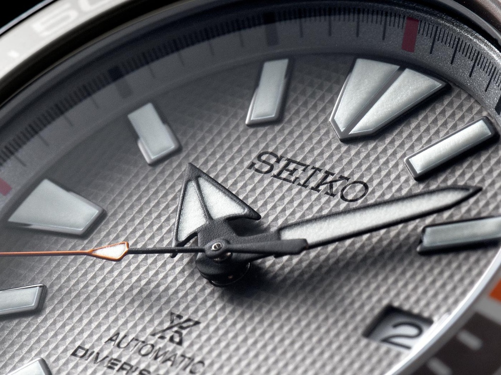 Ocelové pouzdro poduškového tvaru má při průměru 45 milimetrů tloušťku 13,4 mm. Želvy jako jsou coby oblíbené potápěčské hodinky známé masivními indexy a ručkami. O ty samozřejmě nepřišla ani Dawn Grey varianta, ovšem kvůli barvě číselníku nejsou tolik kontrastní.