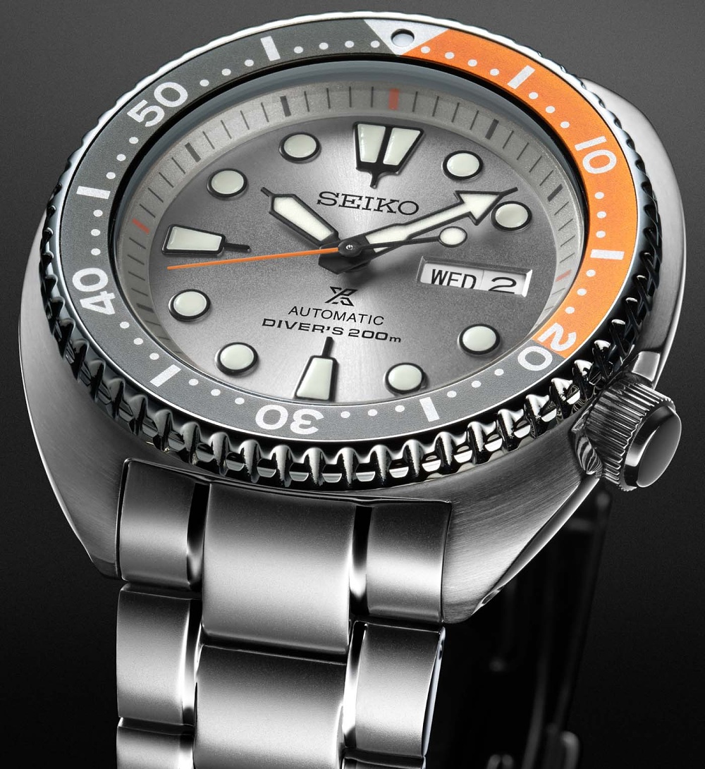 Seiko Dawn Grey Turtle nesou modelové označení SRPD01K1 a s výjimkou barvy číselníku jsou ony notoricky známé před pár lety oživené želvy.