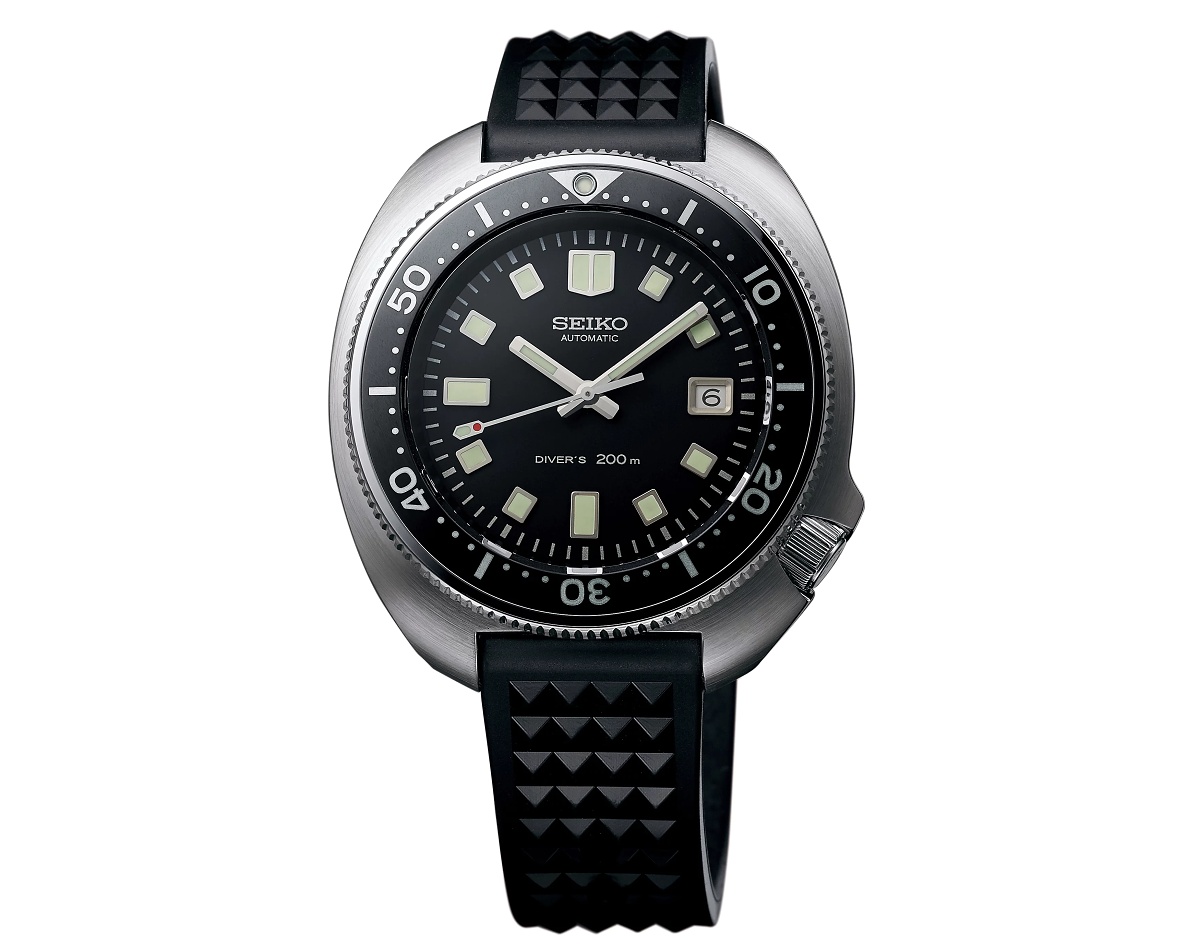 Nad číselníkem je položeno vypuklé safírové sklo s antireflexní úpravou. Korunka ke korekci času a data, kterou lze použít i k manuálnímu nátahu, pak z pouzdra “vyrůstá” na pozici 4.hodiny a při úplném zašroubování jej zcela chrání zvýšené linie pouzdra. Pro úplnost jen dodejme, že korunka původního modelu 6105-8110, jehož recenzi přineseme v blízké době, byla bez závitu, tedy jen vysunovací. Silikonový řemínek má stejně jako v případě zmíněných znovuoživených modelů pyramidový vzor.