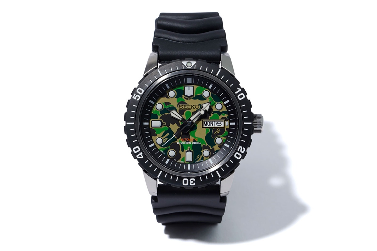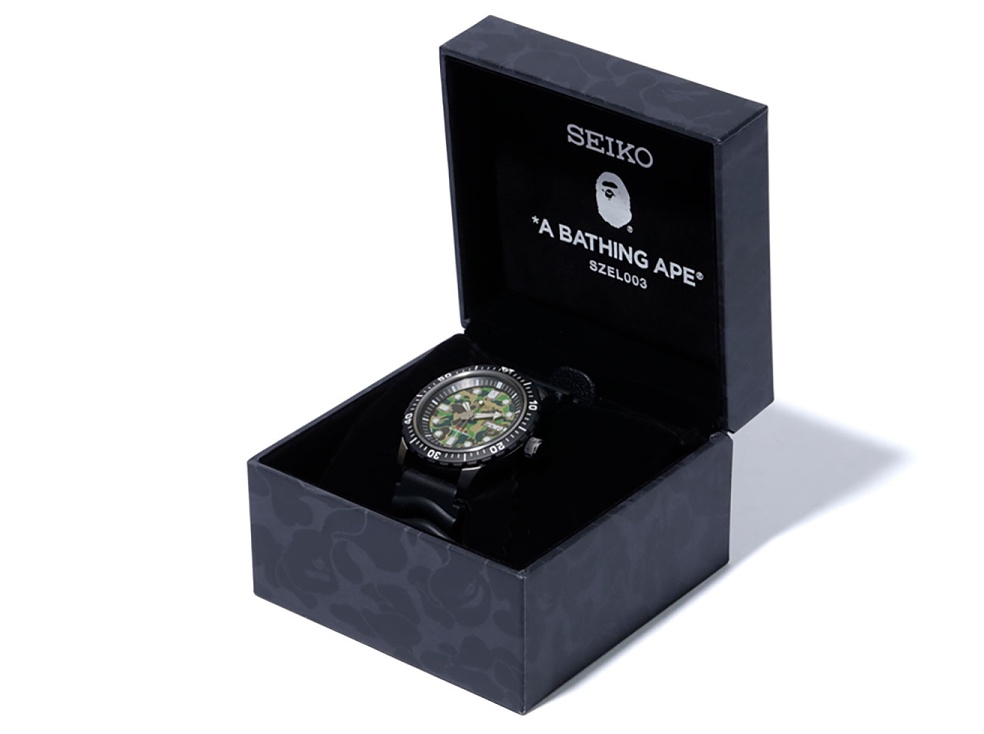 Seiko ukázalo plod spolupráce se známou módní značkou BAPE (A Bathing Ape), která letos slaví 25 let existence. Výsledkem kooperace jsou potápěčské hodinky (jak taky u Seika jinak) s netradičním číselníkem v barvách camo.