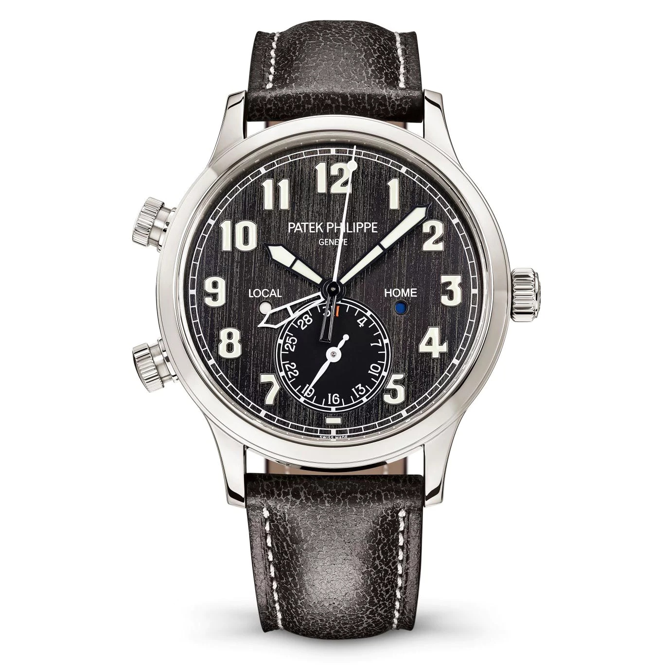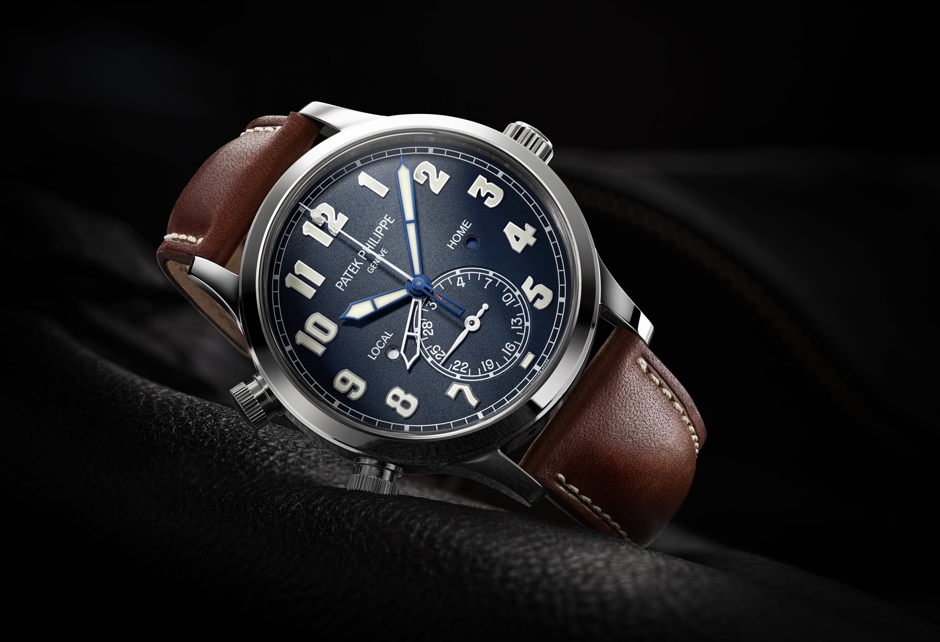 Pilotní Calatrava nejsou žádnou neznámou a to přestože se jedná o poměrně nový model v nabídce Patek Philippe, uveden totiž byl na jaře 2015. Varianta 5524G se pyšnila přehledným modrým číselníkem, tato nová má ale černý se svislým výbrusem. S provedením číselníku dokonale ladí vintážně vyhlížející černý řemen s bílým prošíváním. Poslední odlišností je pak nápis „Children Action 2018“ na dýnku hodinek.