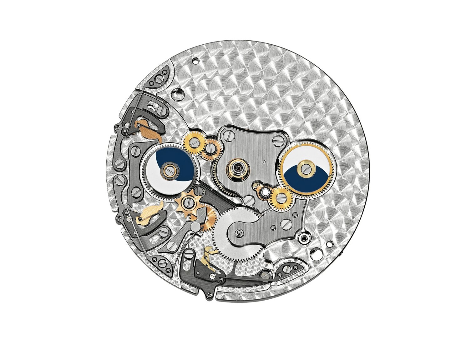 Strojek vedle trojice centrálních ruček uvádí do pohybu také skeletovanou GMT ručku. Dva terčíky indikují den a noc jak standardního času, tak i času vybrané druhé časové zóny.